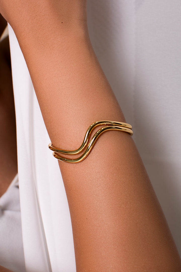 O Bracelete Ritmo combina linhas dinâmicas com um toque de modernidade, criando uma